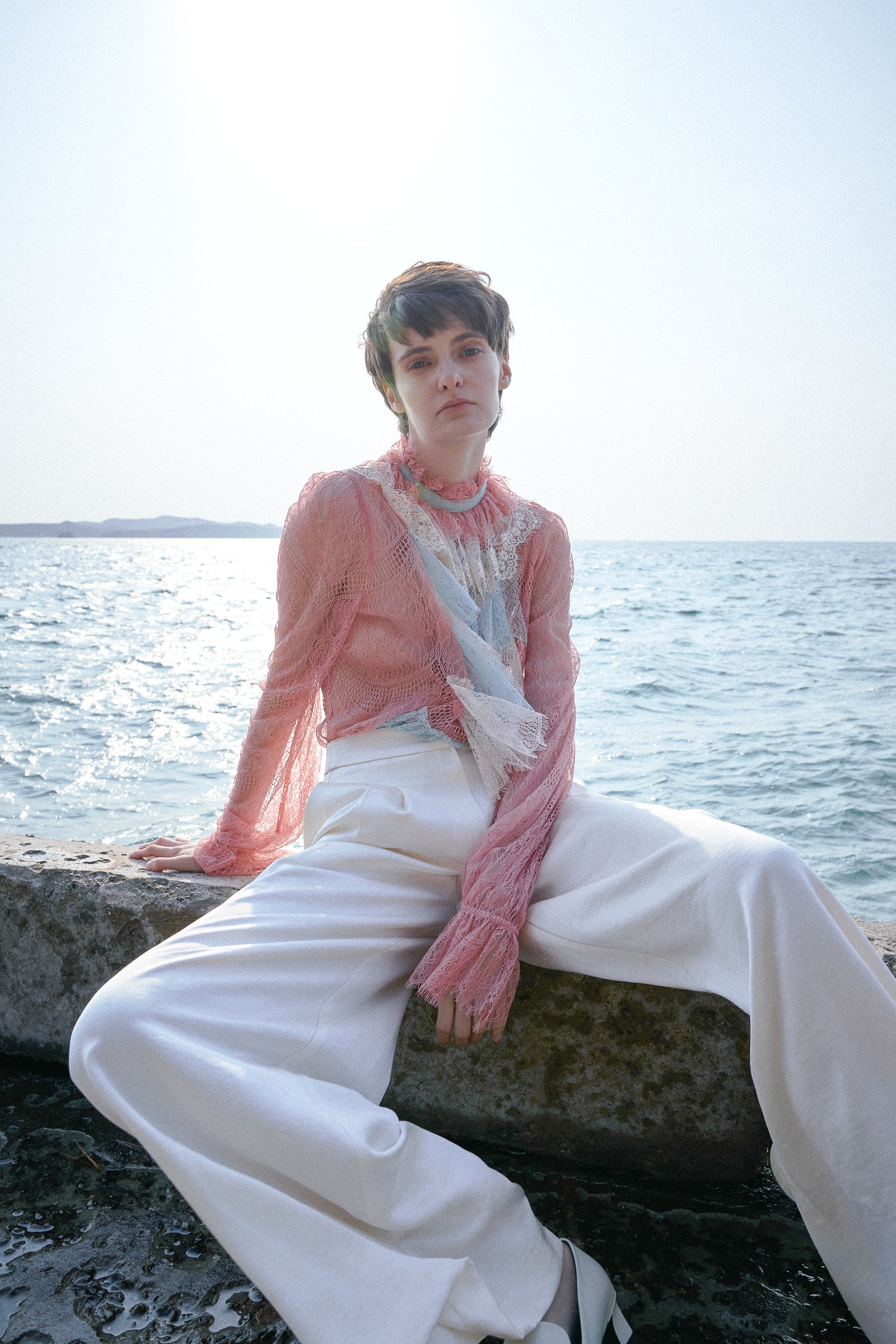 텍스처가 있는 레이온 새틴 원단으로 제작된 와이드레그 팬츠입니다.